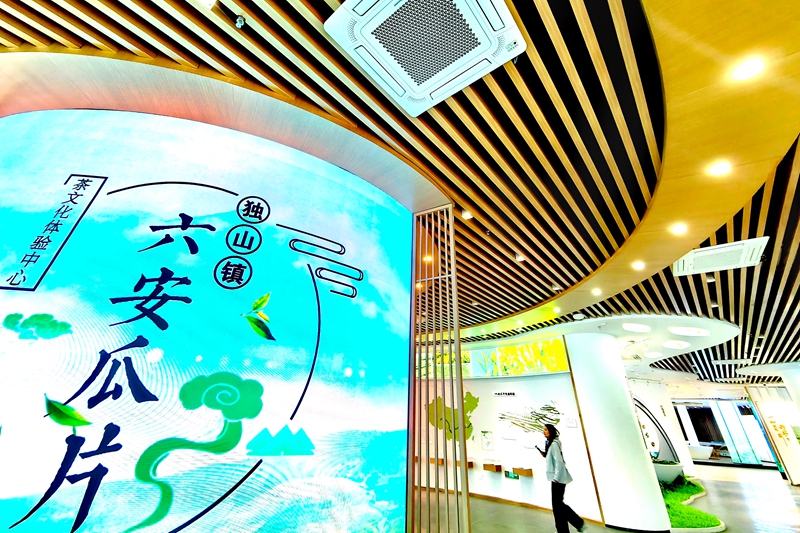 4月1日,裕安区独山镇六安瓜片茶文化体验中心里游客正在参观。