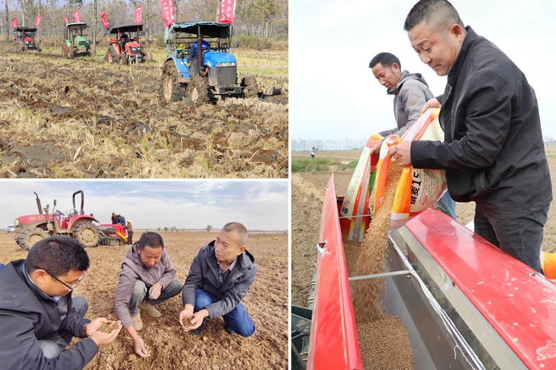 左上图:11月4日,临淮岗镇秋收秋种突击队在临闸村深翻旋耕农田,为小麦播种做准备。