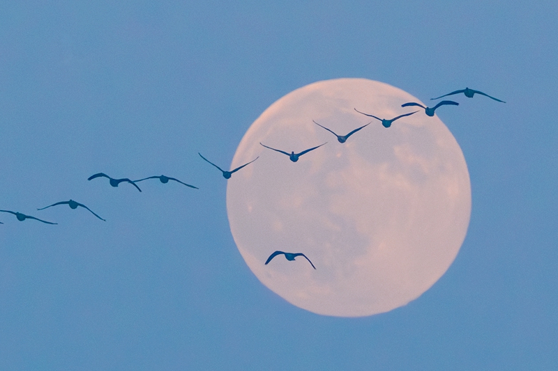 候鸟邂逅“超级月亮”
