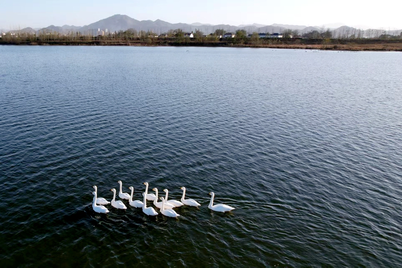 入冬以来,霍山县东淠河陆续迎来天鹅、大雁等多批越冬候鸟,这些远道而来的“客人”在此短暂停留补充能量后将再度南迁。近年来,随着当地生态环境的改善,霍山县东淠河已成为许多候鸟越冬迁徙途中的“中转站”,展现出人与自然和谐共生的美好生态画卷。