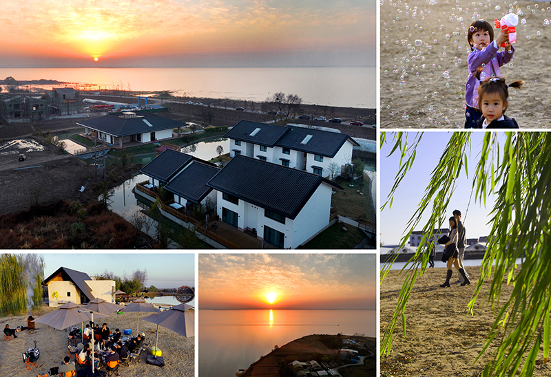 霍邱县新店镇黄泊渡村依托淮河古渡口和城东湖的资源优势,建成少间·烟泊渡乡野民宿,设有和谐乡风展示中心、水岸咖啡、游玩沙滩、卡丁车场地、户外草坪、咖啡吧、风景泳池、垂钓台等多个活动区。通过挖掘本地民俗、农耕文化和生态资源,打造集文化体验、田园观光、休闲互动于一体的文旅融合示范区,吸引众多游客来此感受淮河风情,体验采摘乐趣,参与非遗手作,聆听乡风讲堂,漫步滨水步道,欣赏淮河岸线的自然风光,品味淳朴的乡村生活,有力地促进了村民增收,带动地方经济发展,助力乡村振兴。