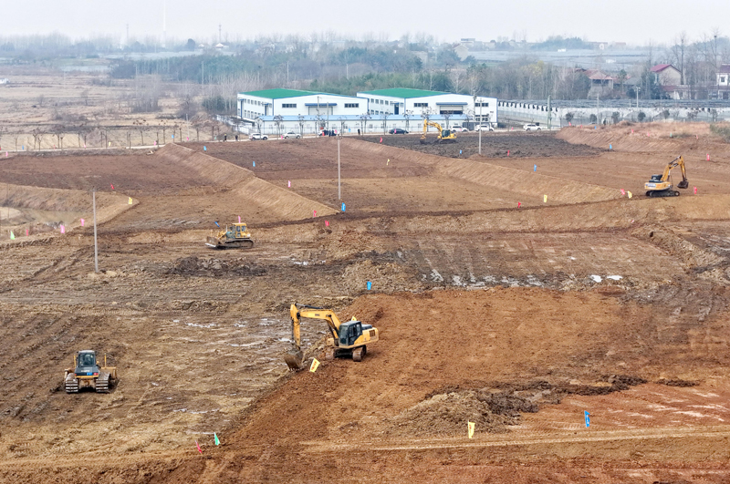 12月19日,裕安区罗集乡栗树村,大型机械在田间穿梭进行沟渠清淤和道路修筑作业。