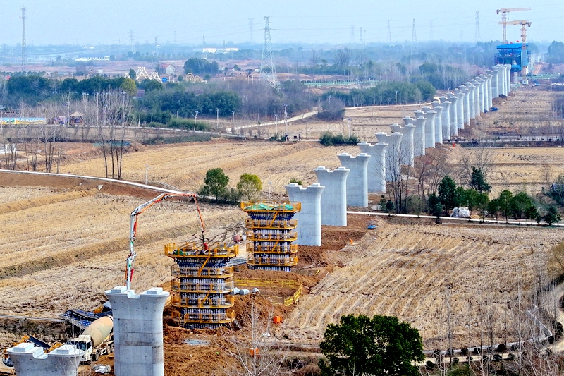 1月10日,合武高铁裕安区江家店镇境内段施工现场,工人在进行桥墩墩身施工作业,为后续架梁、铺轨等奠定坚实基础。