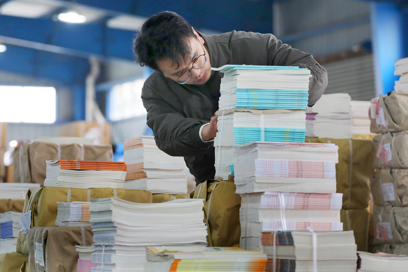 2月27日,市新华书店教材仓库内,工作人员穿梭在“书山”中,忙而有序地整理、核对、封装、贴标、发送教材,确保新学期开学时学生能及时领到新教材。据了解,春季新学期开学在即,市新华书店针对不同学校、年级、科目的征订量和部分年级将全部使用新版教材的要求,实时跟踪出版进度和到货时间,按照“随到随卸、随卸随分、随分随发”的原则,组织工作人员加班加点对陆续运抵的新学期教材进行搬运、分类、整理,优化配送,确保教材在开学前全部精准送达。据悉,春学期开学,市新华书店将对金安区、裕安区各中小学校配送教材教辅约260万册。