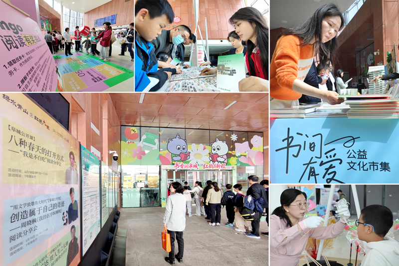 漫步文化市集,阅读有奖挑战(左上图左一)、以书换蔬、做春天里的一页诗人(左上图左二)等6大互动展位,带你丰富阅读体验,激发阅读兴趣;阅读分享会上,读者、志愿者、阅读推广人以文润心、以读会友,与知名作家明对面互动交流阅读感悟、用文字点亮心灵;非遗展销台前,吹糖人、手工编织等琳琅满目……在全国首个“全民阅读活动周”到来之际,4月18日,我市在市图书馆举行“书香润皋城 红韵启新程”全民阅读活动周暨第二届皋城阅读月启动活动。活动现场,广大市民和读者流连各个特色展区,购买心仪图书,挑选文创产品,参与形式多样的文化活动,共赴一场书香文化盛宴。
